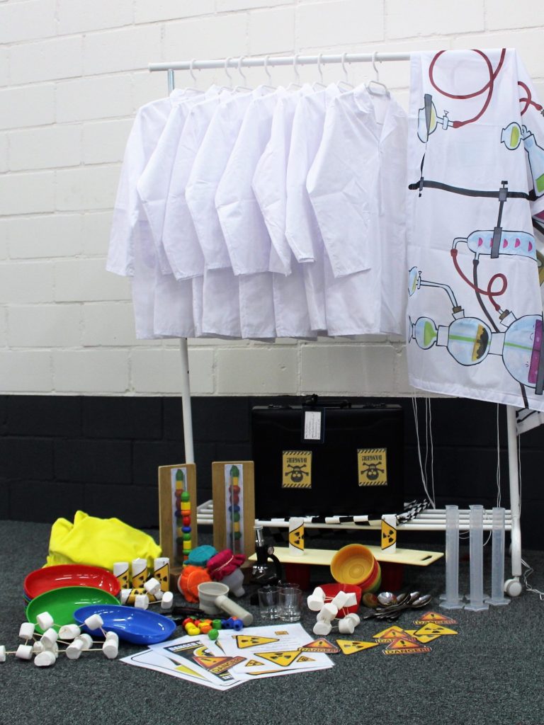 Alles zit overzichtelijk in één kist: leuke experimenten, duidelijke uitleg en themamaterialen in professorstijl.